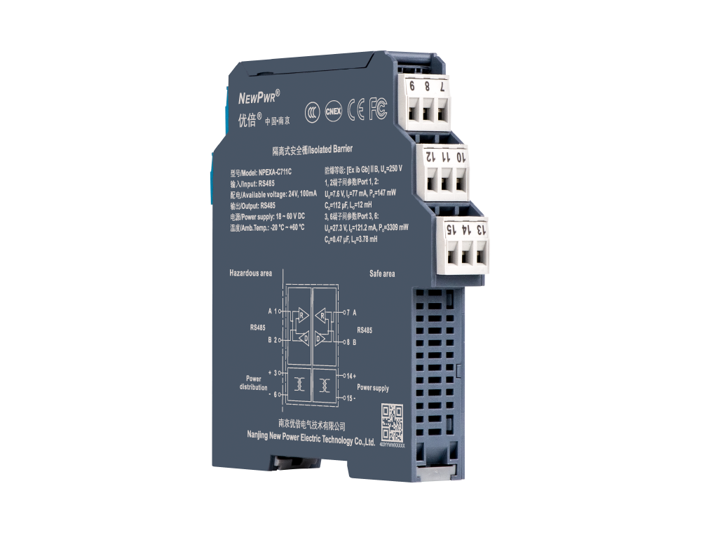 | 介電強(qiáng)度 | ≥ 3000 V AC (本安側(cè)與非本安側(cè));≥ 1500 V AC (電源與非本安側(cè)) |