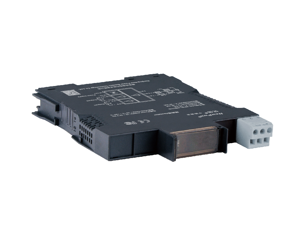 This isolator detects loop current and converts it to 4~20mA signals, and also provides transmitters with power. It allows transmission of HART communication signals. It needs a backplane power supply. The input, output, and power supply are galvanically isolated from each other.