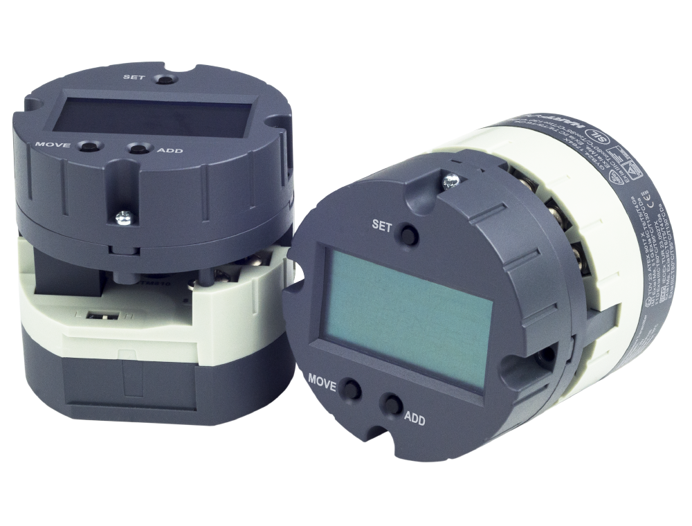 溫度變送模塊,輸入熱電偶、熱電阻、毫伏、電阻信號(hào),經(jīng)數(shù)字線性化處理隔離轉(zhuǎn)換為4~20mA輸出,在輸出回路上截取能量為工作電源。支持HART數(shù)字通信, 帶LCD顯示屏。